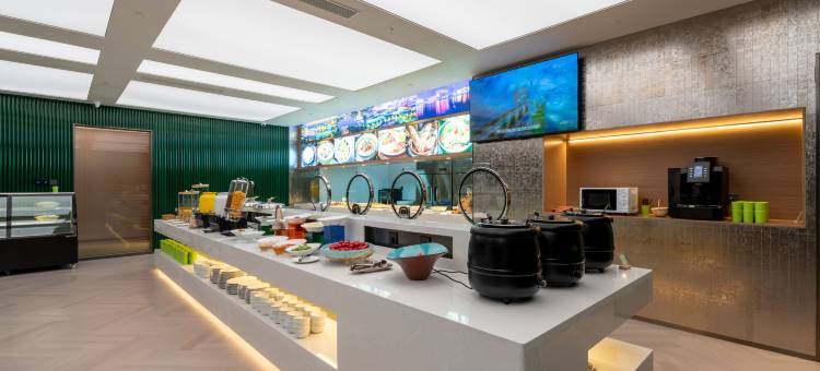 来得比较晚住了个景观房,是拐角弧形270度的窗户,视野好,还有按摩沙发,不管是装修风格还是房间布局比很多五星的景观房好不是一点半点,浴缸,双洗手池跟很多配置比很多度假酒店要好,房间非常干净。隔音做的很好,安静。 酒店有不少的内窗房间,我看部分内窗房间酒店都很贴心的做了窗外的绿植景观,比那些连锁酒店的内窗强太多。 位置没得说,打车到万象汇八大局火车站都方便,骑楼下共享电动车2分钟到张店银座商城王府井,5分钟到万象汇,8分钟到八大局,晚上骑车很凉快,楼下美食街,晚上各种小吃夜宵都有。 暑假淄博人不少,吃早餐很多带孩子的,有小孩儿爱吃的薯条,茶叶蛋蛋炒饭跟粥做的就是家里的味道,出来旅游吃一顿还是很舒服的 暑假人流量大,能找到性价比这么高的酒店,已经很好了,还会再来,推荐给大家。