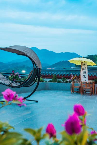 天台上观日落山景,享高铁接送服务