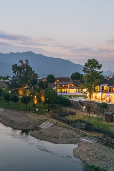 私享楼顶·温泉泡池~推门就见鱼鳞坝