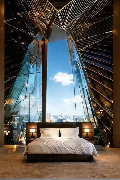 房间视野开阔,能看到城市夜景