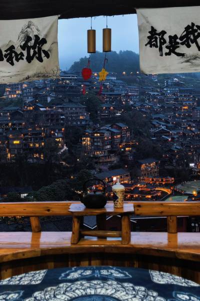 私享苗寨全景的高空酒吧